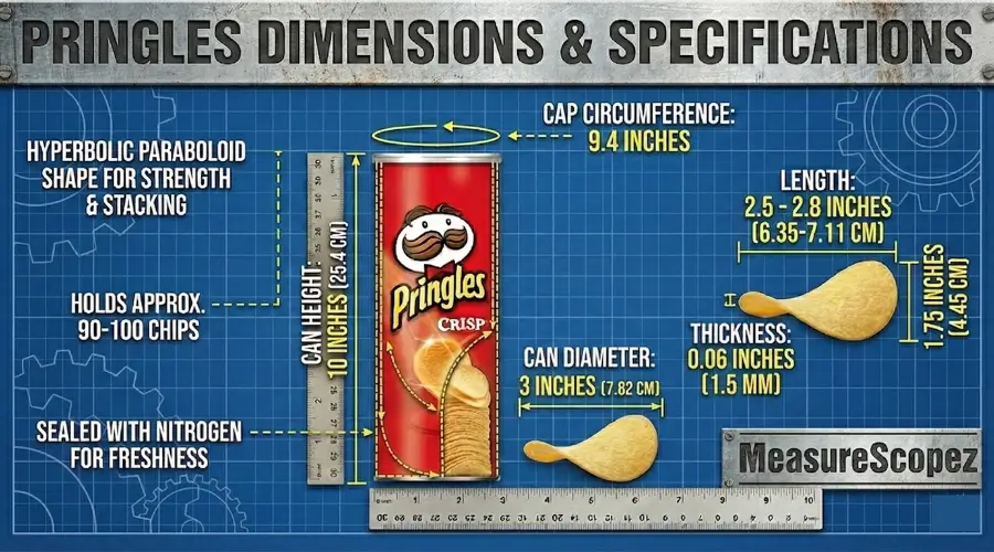When you grab that iconic Pringles container, understanding its dimensions becomes essential for storage and planning. This unique cylindrical vessel measures about 10–inches tall with a diameter close to 3–inches, specific measurements that have been carefully engineered by the brand since its introduction in 1968. The functional design maximizes freshness while holding your favorite flavor options like Original, BBQ, or Sour Cream & Onion chips.